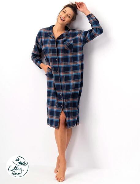 Női hosszú ujjú ing- kiváló minőségű flanel- kockás minta- gombokkal rögzíthető- gallérral- kényelmes zsebek a csípőn- térdhosszúságÖsszetétel: 100% pamut