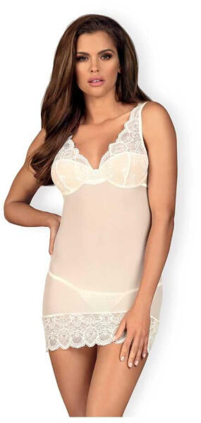Elegáns ing csipkével díszített, könnyű anyagból készült tangákkal. Egy kamion enyhén megerősített kosarakkal. Csipke pántok hosszállítással. Luxus ing, amely többet árul el, mint amennyit elrejt, alkalmas egy romantikus estére párként. Anyaga: 94% poliamid, 6% elasztán