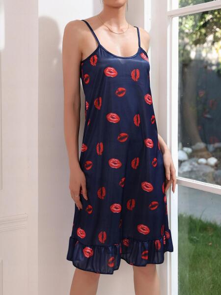 Shein Hálóing Sötétkék Piros Ajkak Fodros 34 Xs__xsALLEGRO
