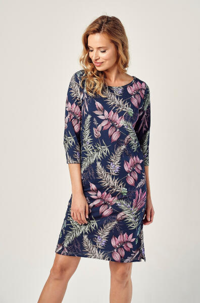 Női pamut ing 3/4-es ujjú Kiváló minőségű mintás pamutból készült Kerek nyakkivágás Térd hossz Anyaga: 100% pamut