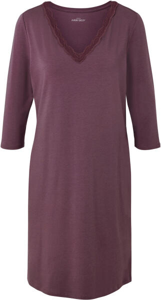 Hálóing Szín: Padlizsánlila Anyag: 48% pamut (támogatja a Cotton made in Africa kezdeményezést), 47% modál, 5% elasztán Csipke: 84% poliamid, 16% elasztán Méretek: Teljes hossz: kb. 94 cm (M 40/42-es méret) Fazon: Regular Fit Könnyű pamut-modál keverékV-kivágás finom csipkével3/4-es ujjhosszOldalhasítékokTartós és a mosást rendkívül jól tűrő, kiváló minőségű, márkás elasztánnalEz a hálóing támogatja a termelőket.