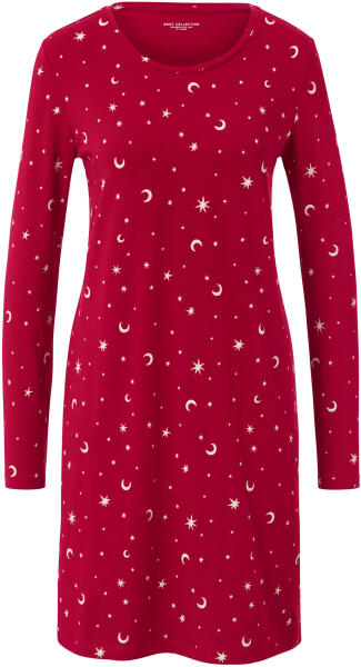 Hálóing, piros Szín: Piros, éjjeli égbolt nyomott mintával Anyag: 58% pamut (támogatja a Cotton made in Africa kezdeményezést), 39% viszkóz, 3% elasztán Méretek: Teljes hossz: kb. 94 cm (M 40/42-es méret) Puha anyag pamutból és viszkózbólTartós és mosásálló, kiváló minőségű, márkás elasztánnalEz a hálóing támogatja a termelőket.