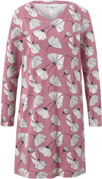 Hálóing, virágos Szín: Sötétrózsaszín, virágos mintával Anyag: 58% pamut (támogatja a Cotton made in Africa kezdeményezést), 39% viszkóz, 3% elasztán Méretek: Teljes hossz: kb. 94 cm (M 40/41-es méret) Kellemesen puha pamut-viszkóz anyagV-nyakkivágásTartós és rendkívül mosásálló, kiváló minőségű, márkás elasztánnalEz a hálóing támogatja a termelőket.