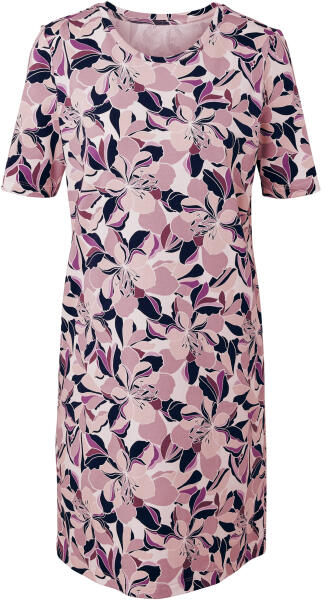 Hálóing Szín: Mályva-rózsaszín nyomott virágmintás Anyag: 58% pamut (támogatja a Cotton made in Africa kezdeményezést), 39% viszkóz, 3% elasztán Méretek: Teljes hossz: kb. 94 cm (M 40/42-es méret) Fazon: Regular Fit Puha anyag pamutból és viszkózbólKerek nyakkivágással és rövid ujjakkalTartós és rendkívül mosásálló, kiváló minőségű márkás elasztánnalEz a hálóing támogatja a termelőket.