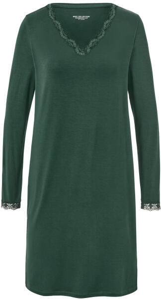 Női hálóing csipkerátéttel, sötétzöld Szín: Sötétzöld Anyag: 58% pamut (támogatja a Cotton made in Africa kezdeményezést), 39% viszkóz, 3% elasztán Csipke: 87% poliamid, 13% elasztán Méretek: Teljes hossz: kb. 94 cm (M 40/42-es méret) Puha anyag pamutból és viszkózbólA V-nyakkivágás és az ujja vége finom csipkerátéttelTartós és rendkívül mosásálló, kiváló minőségű márkás elasztánnalEz a pizsama támogatja a termelőket.