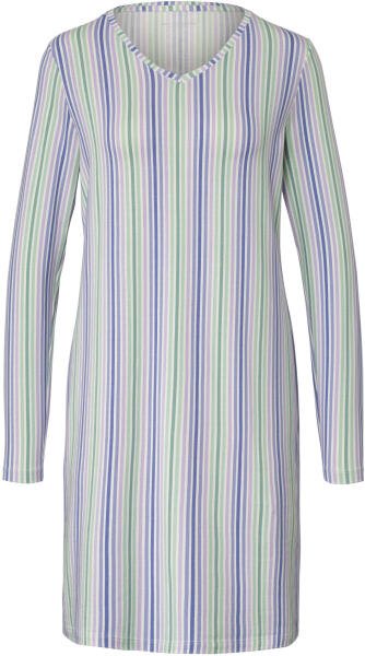 Női hálóing, csíkos, színes Szín: Krémszínű-világoszöld-kék-lila csíkos Anyag: 58% pamut (támogatja a Cotton made in Africa kezdeményezést), 39% viszkóz, 3% elasztán Méretek: Teljes hossz: kb. 94 cm (M 40/42-es méret) Puha anyag pamutból és viszkózbólV-nyakkivágásTartós és rendkívül mosásálló, kiváló minőségű, márkás elasztánnalEz a hálóing támogatja a termelőket.