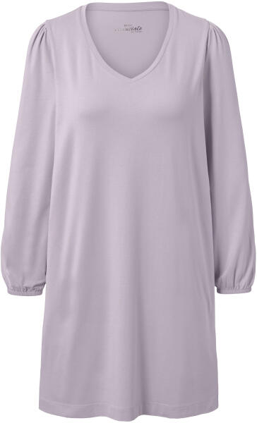 Női hálóing Szín: Halványlila Anyag: 48% pamut, 47% modál (TENCEL), 5% elasztán Méretek: Teljes hossz: kb. 92 cm (M 40/42-es méret) Fazon: Regular Fit Puha pamut-modál anyagkeverékV-nyakkivágásUjjak rugalmas szegéllyelOldalhasítékokTartós és a mosást rendkívül jól tűrő, kiváló minőségű, márkás elasztánnalEz a hálóing elősegíti a fenntartható gyapot termesztését.