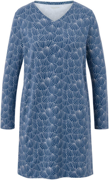 Női hálóing, kagylós, kék Szín: Kék fehér kagylós mintával Anyag: 58% pamut (támogatja a Cotton made in Africa kezdeményezést), 39% viszkóz, 3% elasztán Méretek: Teljes hossz: kb. 94 cm (M 40/42-es méret) Puha pamut-viszkóz keverékV-nyakkivágásTartós és rendkívül mosásálló, kiváló minőségű, márkás elasztánnalEz a hálóing támogatja a termelőket.