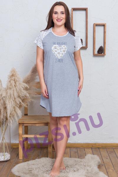 Extra méretű női hálóing. Rövid ujjas kényelmes középhosszban nyomott mintával. Anyaga a legjobb komfort érzetét keltő puha tapintású: 70% pamut 30% poliészter.