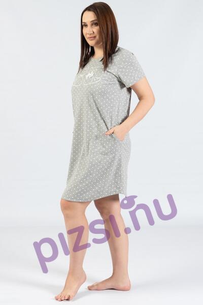 Extra méretű női hálóing. Rövid ujjas kényelmes középhosszban nyomott mintával oldalzsebbel ellátva. Anyaga a legjobb komfort érzetét keltő puha tapintású: 70% pamut 30% poliészter.