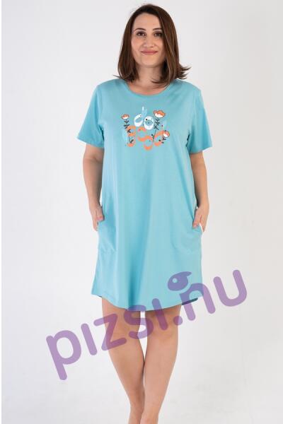 Extra méretű női hálóing. Rövid ujjas kényelmes bő szabású nyomott mintával. Anyaga a legjobb komfort érzetét keltő puha tapintású: 100% pamut.