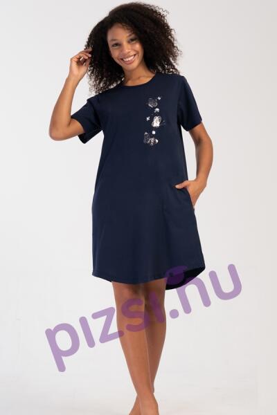 Extra méretű pamut női hálóing. Rövid ujjas kerek nyakkivágással kényelmes középhosszban nyomott mintával. Anyaga a legjobb komfort érzetét keltő puha tapintású: 100% pamut.