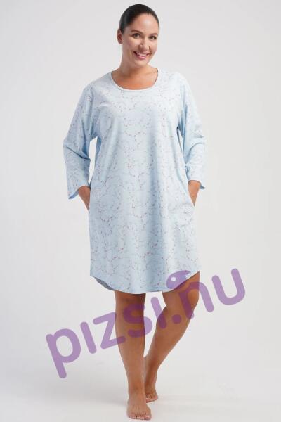 Extra méretű női hálóing. Hosszú ujjas kényelmes bő szabású  csinos középhosszban oldalzsebbel. Szín és formatartó. Anyaga a legjobb komfort érzetét keltő puha tapintású: 100% pamut.