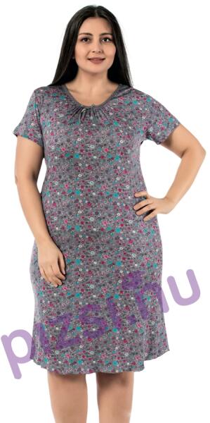 Extra méretű női hálóing. Rövid ujjas kényelmes középhosszban nyomott mintával. Anyaga puha tapintású: 95% viszkóz 5% elasztán.