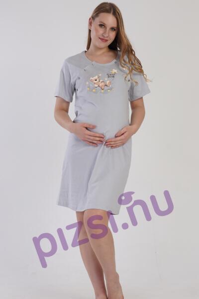 Kismama hálóing: két oldalán kényelmes gombolással csinos középhosszban. Nyakkivágása és az ujjak végén erősített szegéllyel. Szín és formatartó. A legjobb komfort érzetét keltő puha tapintású. Anyaga: 100% pamut.